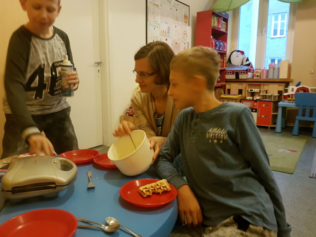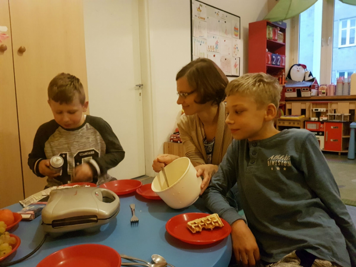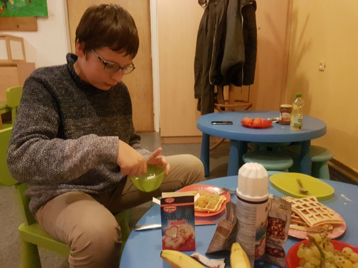 Trening Umiejętności Społecznych - dziś robiliśmy gofry z bitą śmietaną i owocami.