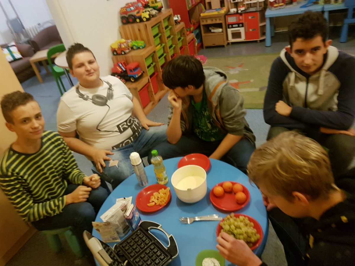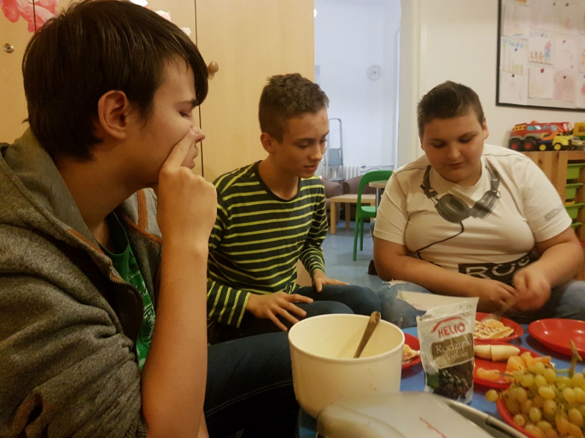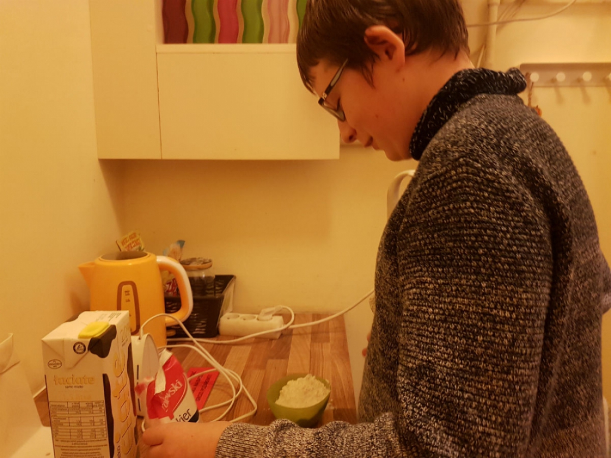Trening Umiejętności Społecznych - dziś robiliśmy gofry z bitą śmietaną i owocami.