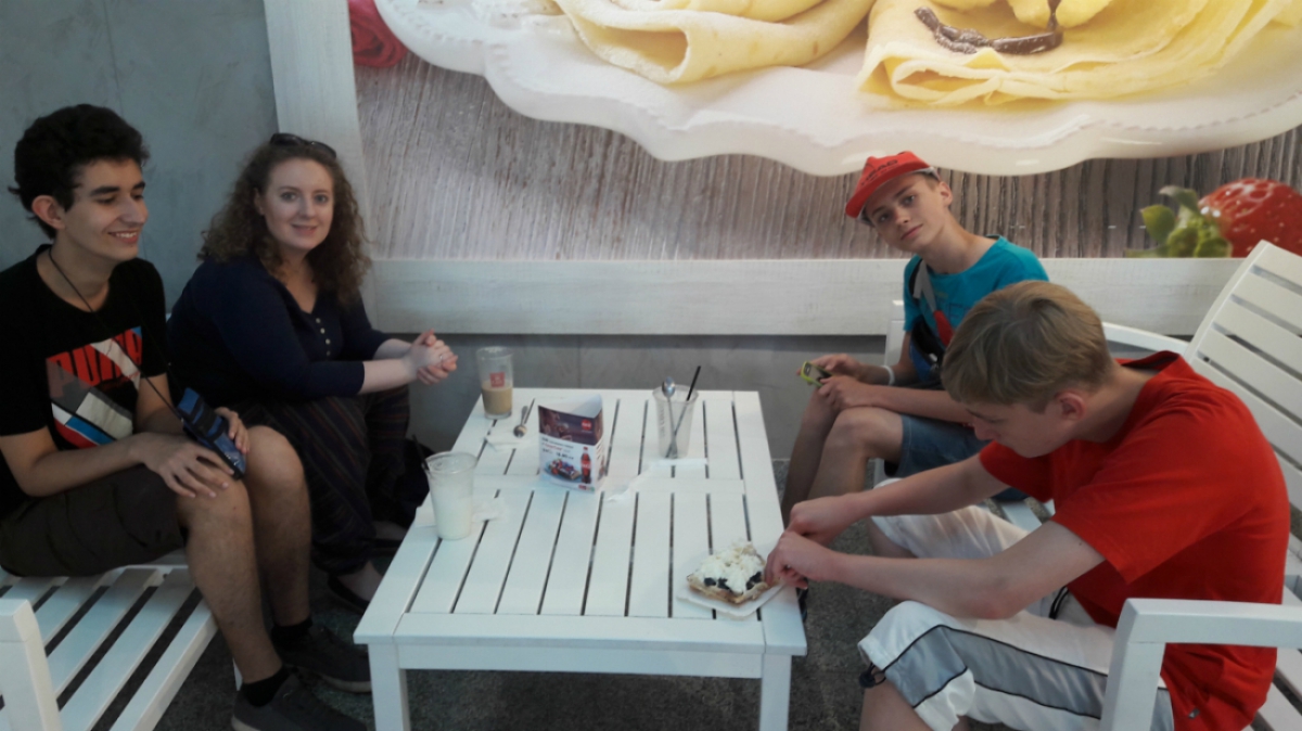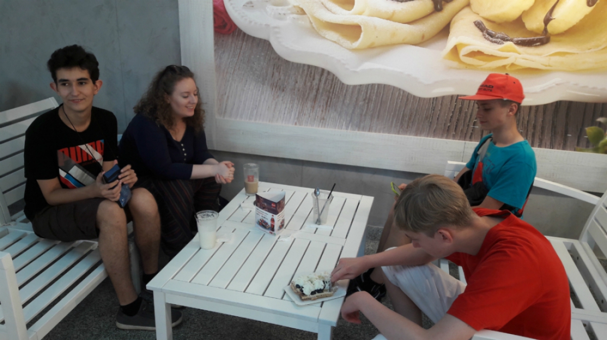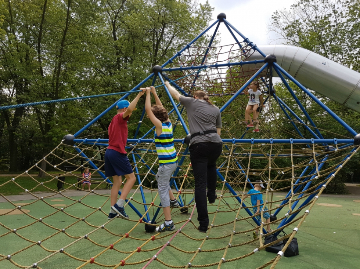 W ramach zajęć terenowych z młodszą grupą byliśmy na placu zabaw przy pl. Wilsona i na frytkach, a ze starszą grupą na tarasie widokowym na lotnisku i na lodach/gofrach. Chłopcy planowali trasę i na zmianę byli przewodnikami, więc udało się połączyć przyjemne z pożytecznym :)