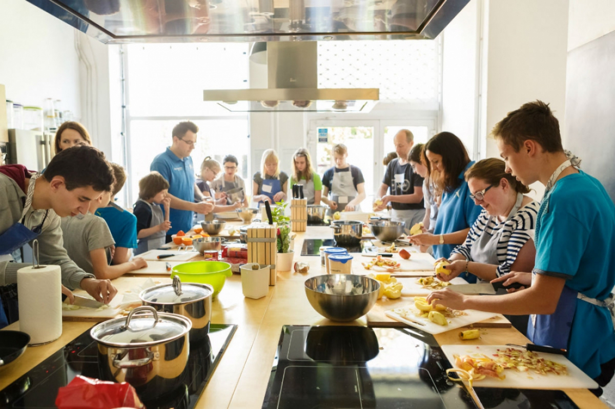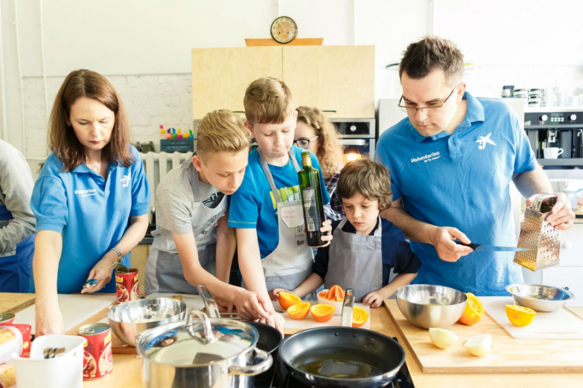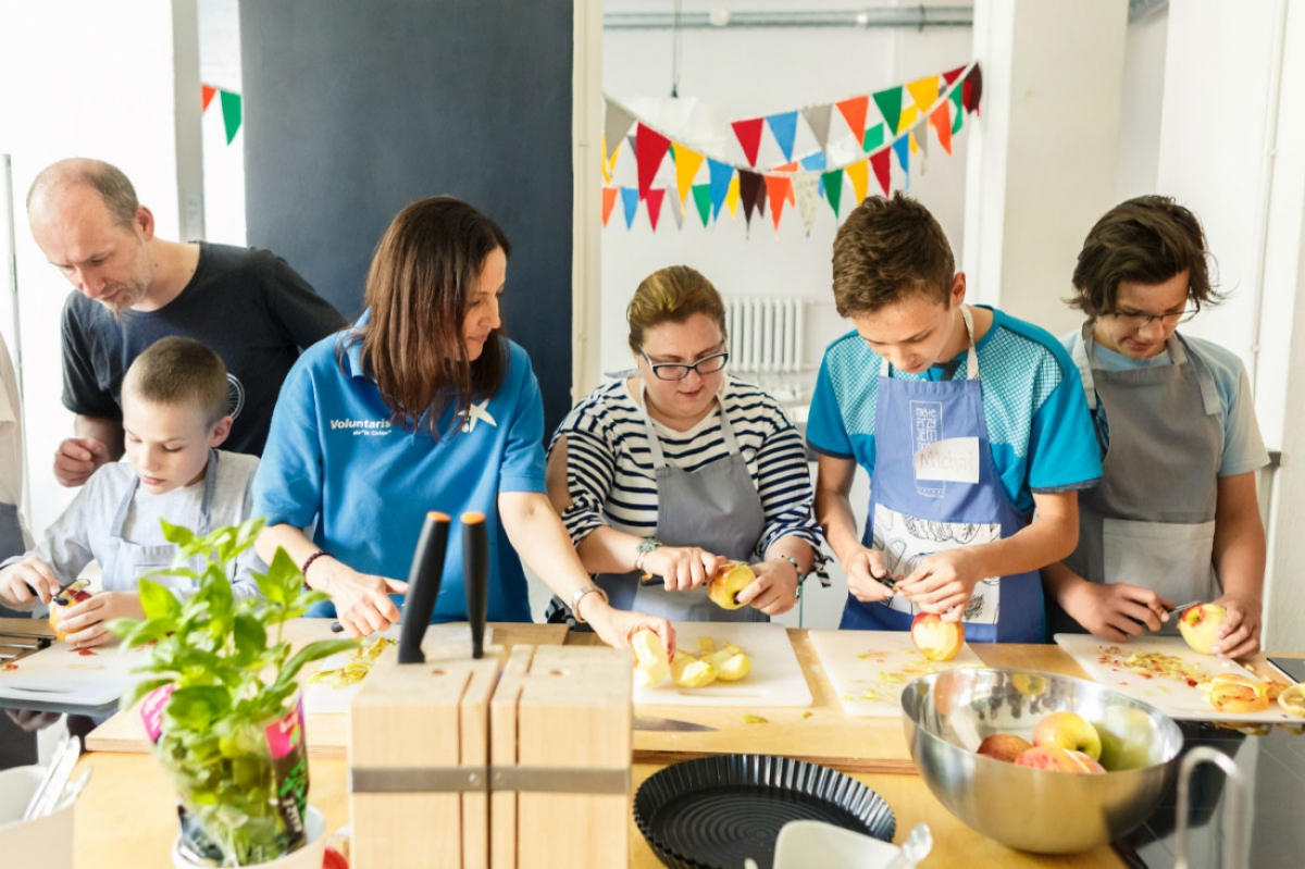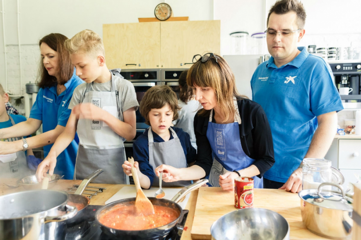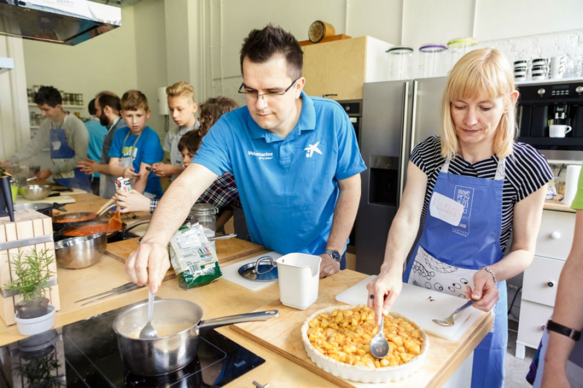 Niezwykle smaczne warsztaty kulinarne w "Studio Kulinarne Małe Przyjemności" z wolontariuszami z CaixaBank.
