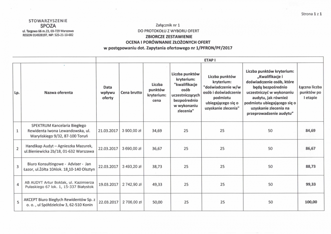 rozstrzygnięcie zapytania ofertowego nr 1/pfron/pf/2017