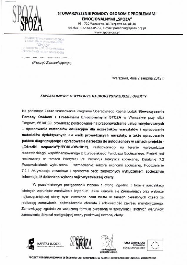 spoza.grafiqa.hosting24.pl | Zapytania ofertowe | Rozstrzygnięte zapytanie nr 1/POKL/OW/2012 Rozstrzygnięte zapytanie nr 1/POKL/OW/2012 Rozstrzygnięte zapytanie nr 1/POKL/OW/2012