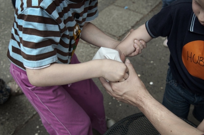 Dziś dziwny piątek. Trochę po Dniu Matki, troszkę przed Dniem Dziecka. Wielka wyprawa Przedszkolaków i ich Mam (i Babć też) śladami warszawskich legend. To znaczy, że mogliśmy pojechać autokarem na drugą stronę Wisły, a tam szukać miejsc, o których opowiada się specjalne bajki. Jechała z nami Pani, która zna te wszystkie historie. Były też Panie w koszulkach z napisem Tchibo. I one pomagały naszym Mamom i nam. Był "Pan Wielkie Oko", który kręcił film. I Pani Marta z aparatem fotograficznym. No i była mała Natalka i mały Mikołaj, czyli dzieci naszych Pań z przedszkola.