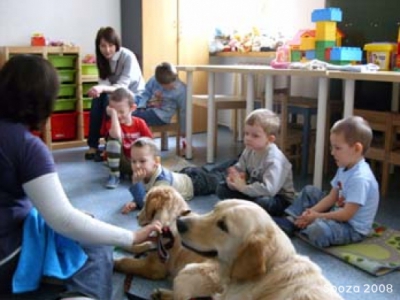 Pieski to też bardzo, bardzo mądre zwierzęta. Jak konie. Uwielbiam być w przedszkolu, gdy są pieski. One się niczego nie boją, są bardzo spokojne, wcale nie warczą. Mi to się nawet wydaje, że one nas lubią. No bo ciągle merdają ogonami i mają uśmiechnięte buzie. Chyba są też trochę czarodziejami, bo jak są u nas, to ja lepiej pamiętam kolory, umiem liczyć i łatwiej mi jest usiedzieć w jednym miejscu. Gdy ich nie ma, to te wszystkie rzeczy wcale nie są takie proste. Dziwne.