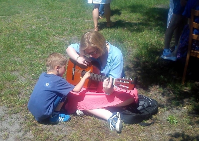 W tym roku już kilka razy obchodziliśmy Dzień Dziecka. To trochę dziwne, ale i tak bardzo fajne. W sobotę jechaliśmy autobusem, takim miejskim do fajnego miejsca, w którym już kiedyś byliśmy, jak był śnieg. Teraz było słońce, trawa, kwiaty, sok jabłkowy, ciastka z dżemem, sałatki, kiełbaski, musztarda, chlebek, woda, jabłka, pierniczki, bańki mydlane, gitara i w ogóle!!! Tyle było spraw do załatwienia, że trzeba było ciągle biegać. Razem z rodzicami bawiliśmy się z prawdziwymi harcerzami w prawdziwe podchody. To było bardzo ciekawe. Trochę trudno. I trochę śmieszne. Można też było pomalować sobie buzię w co tylko się chciało. Albo słuchać jak pani gra na gitarze i razem z nią śpiewać, albo dotykać gitary. I była kolorowa chusta i były nagrody. I tyle, tyle się działo, że na końcu to usnęłam.