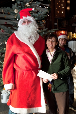 Przed nami zostało ostatnie zadanie. Trzeba było zawołać Mikołaja. Siedzieliśmy i krzyczeliśmy w niebo głosy. Długo. Przyszedł. Strasznie był wysoki. I trochę odmłodniał od zeszłego roku. Miał też swojego pomocnika. Razem wyczytywali imiona dzieci. Rozdawali ogromne paczki. Można też było usiąść na kolanach Mikołaja. Ja nie mogłam się doczekać, żeby zobaczyć, co było w tych wielkich siatkach. Hubert dostał torbę, która była większa od niego. Gdy już każde dziecko dostało prezent, to pobiegliśmy do swoich stolików, zobaczyć, co jest w środku. Wtedy nasi rodzice też byli wywoływani do Świętego Mikołaja. Ale ja już tam nie patrzyłam, bo nie mogłam się oderwać od tego, co zobaczyłam w moich torbach: książki, słodycze, ubrania, kosmetyki, spinki i gumki do włosów,lalkę barbie, koniki ponny. Nawet nie mogłam krzyczeć z zachwytu. Inne dzieci zresztą też. U chłopaków widziałam kolejki, samochody, lego. Nawet dzidziusie dostały zabawki, ubranka, kosmetyki i pieluchy. I wszyscy tak patrzyliśmy na te skarby i NIKT się nie odważył ich otwierać. Tylko zaglądaliśmy do środka, czasem też pokazałyśmy co dostaliśmy naszym paniom z przedszkola. Zachwycały się razem z nami.