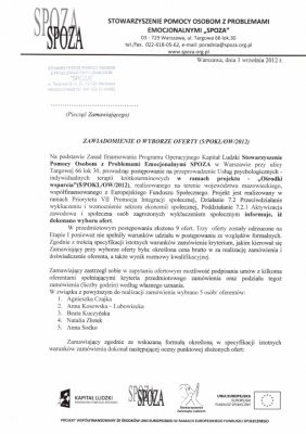 Rozstrzygnięte zapytanie nr 1/POKL/OW/2012